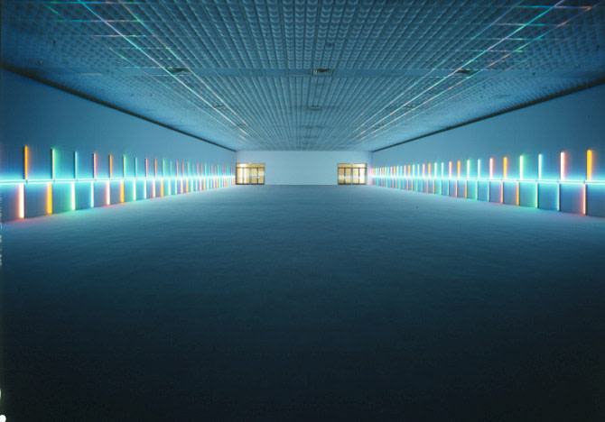 Installation view, Dan Flavin: A Retrospective, Los Angeles County Museum of Art